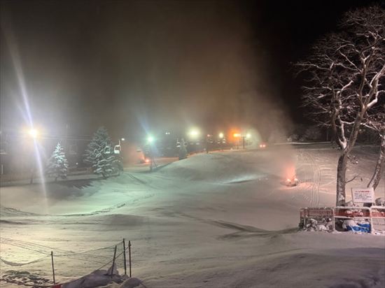 「大変お待たせいたしました! 第一リフトの中央ゲレンデとAコースが12月27日(土)再オープンいたしました。人工降雪機で作った雪に自然雪約30㎝が加わり滑走可能となりました。